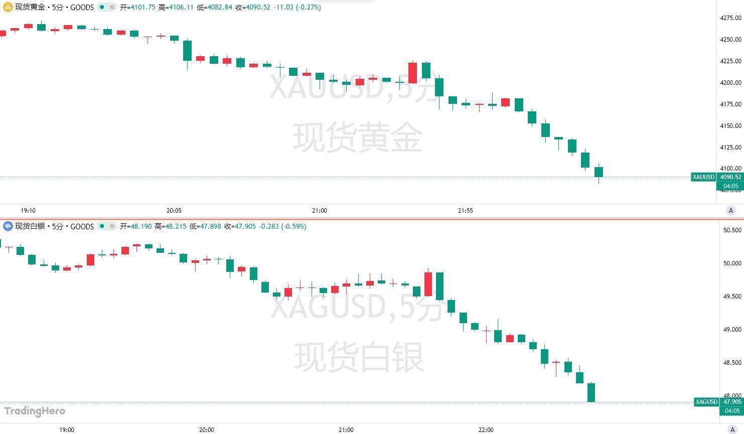 在周一将历史新高刷新至4380美元上方后,现货黄金周二盘中大跌6%,并一度失守4100美元,日内大跌超250美元;白银日内更是暴跌近8%。